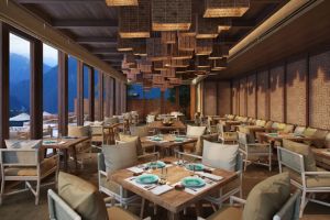 Elegant dining space offering curated Bhutanese and Indian menus with farm-to-table ingredients. Features rustic interiors, scenic views, and sophisticated resort dining experience.