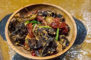 Delicious pork cooked with fiery red chilies, delivering a spicy, savory, and authentically Bhutanese taste.