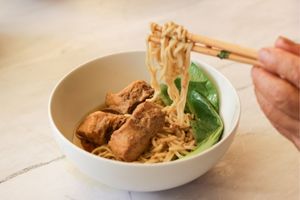 Bak Kut Teh is a peppery pork rib soup slow-cooked with herbs and spices, commonly enjoyed with rice and traditional side dishes.